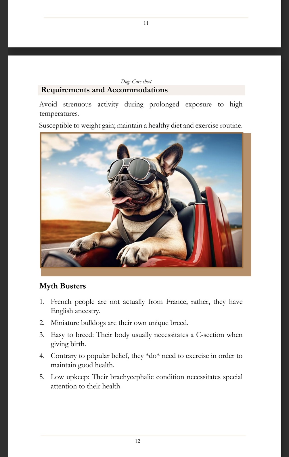 Dog Care Sheets